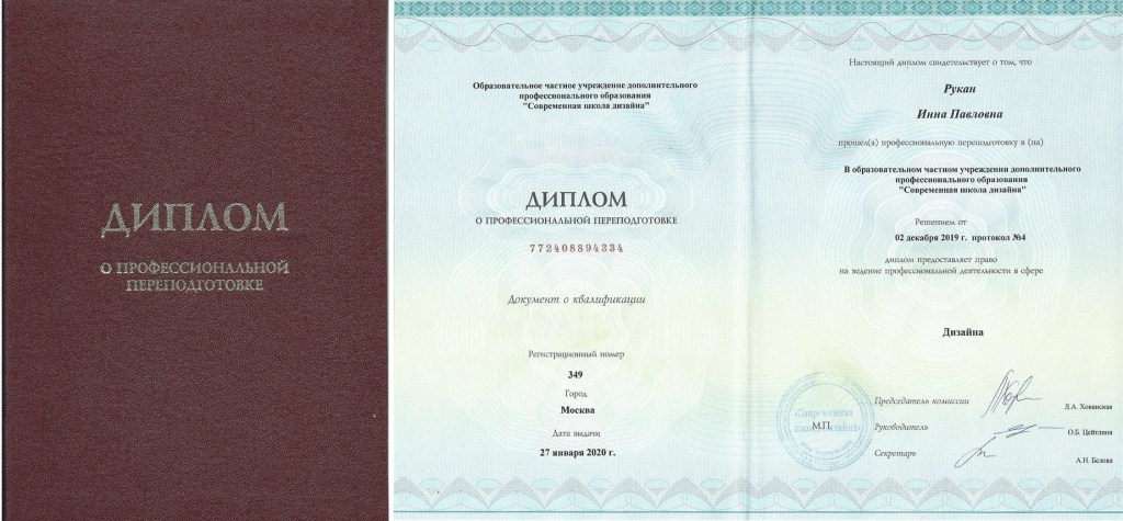 — выпускница Современной Школы Дизайна, г. Москва;