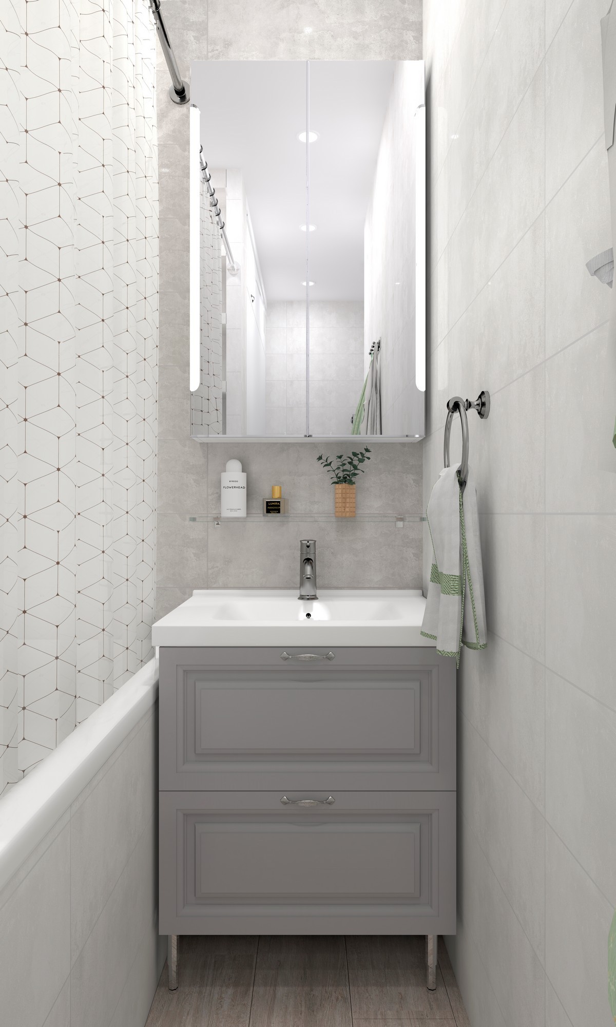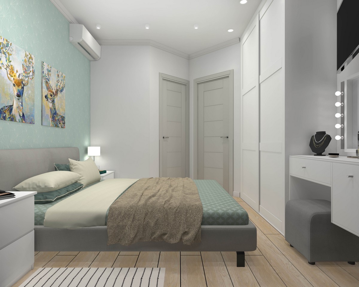 Двухкомнатная квартира площадью 53 м2 находится в Новой Москве. Особенностью это проекта является то, что изначально квартира будет сдаваться в аренду, позже в ней планирует жить семья из 4 человек. 1 этаж позволил максимально увеличить санузлы и коридор. Таким образом, в квартире появились две комфортные спальни и холл-гостиная.