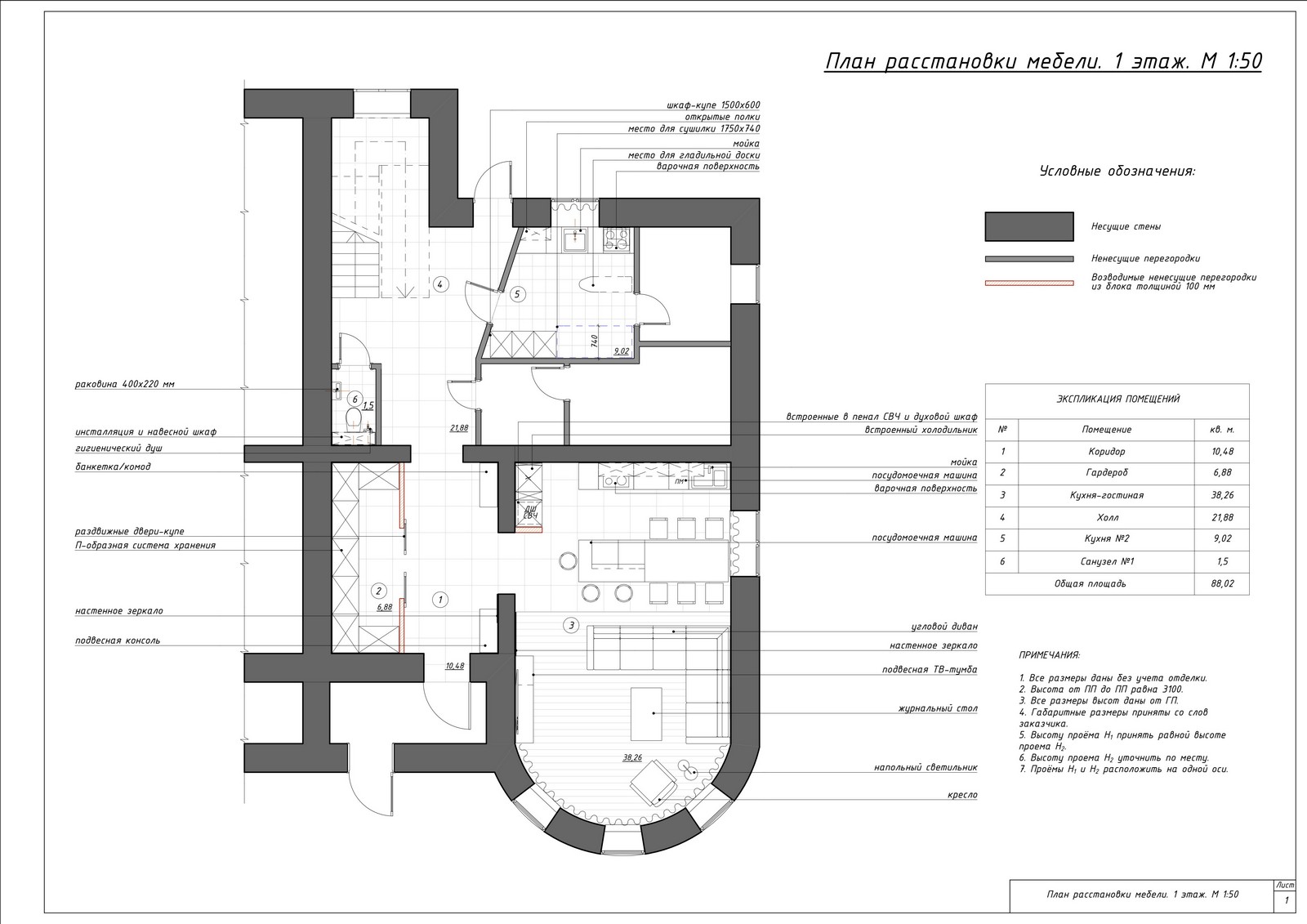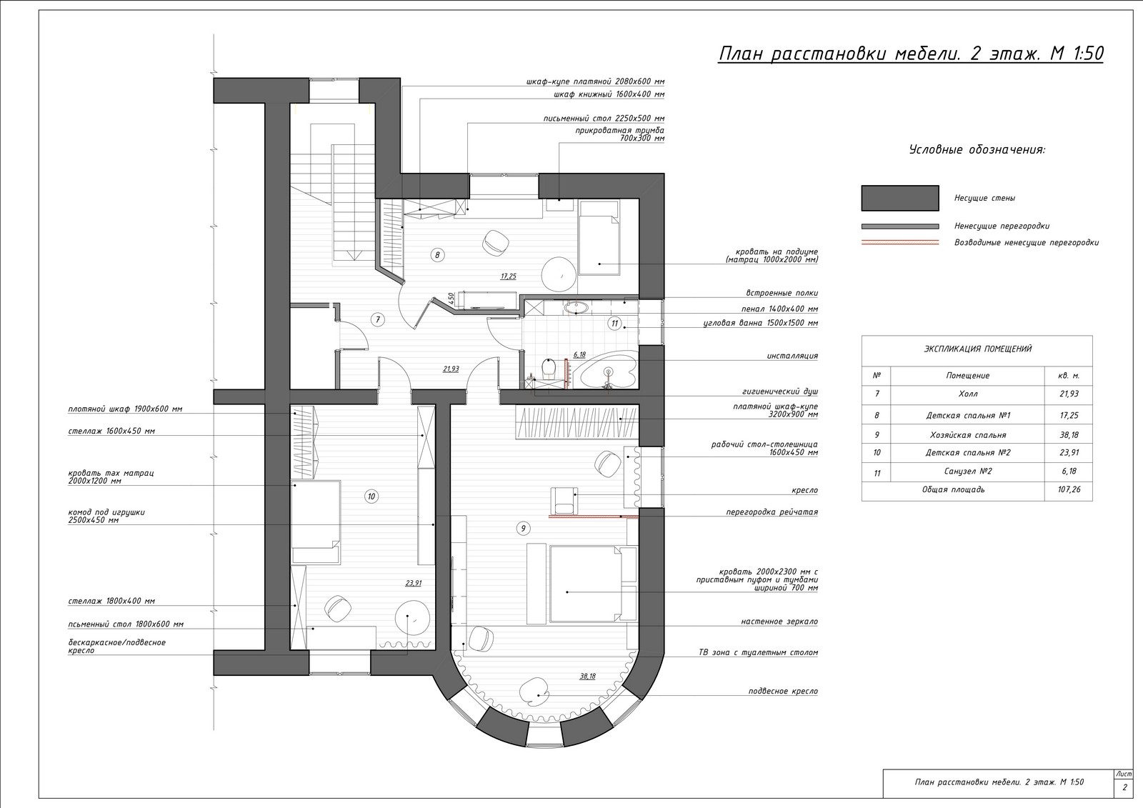 Практически вся мебель выполнена под заказ.