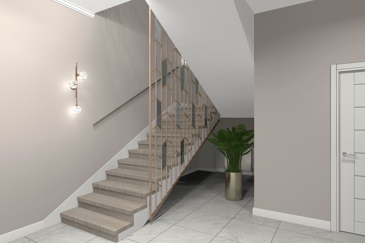 Украшение дома – лестница и её ограждение, выполненное по индивидуальному проекту.